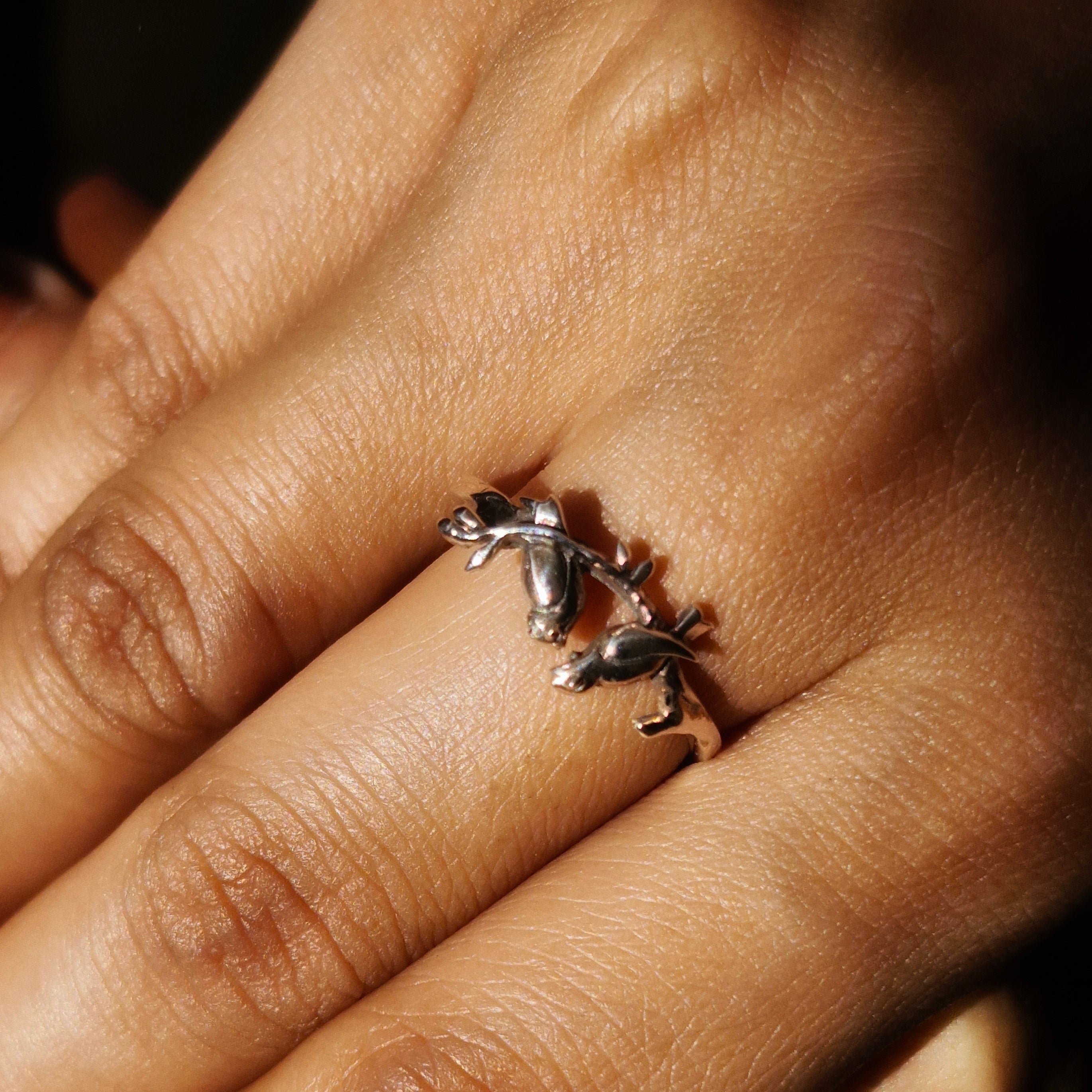Graceful and symbolic, our Bird and Branch Ring is crafted from genuine 925 sterling silver. The delicate design features a bird perched on a branch, representing freedom, harmony, and connection with nature.